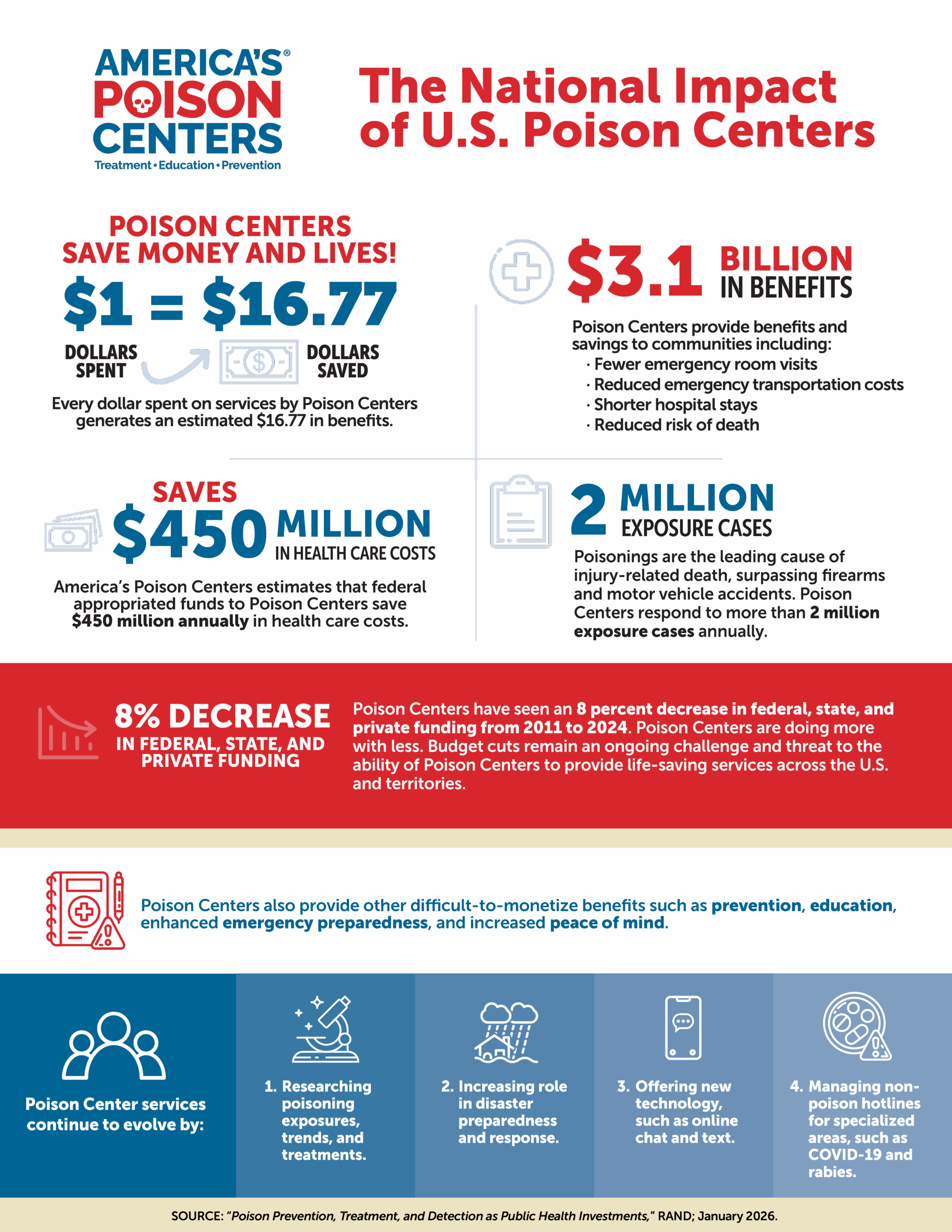 Florida’s Poison Control Centers have been recognized in congressional reports as one of the most cost efficient poison center networks in the nation.